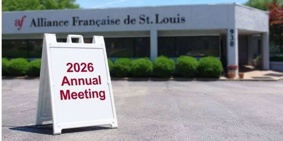 Members of the Alliance Française de St. Louis, you are invited to attend our 2026 annual meeting on Wednesday, April 29 at 5:00 pm at the Alliance. We highly encourage all of our members to attend as you will learn what our board and committees are working on and give you an opportunity to ask questions and make your voice heard.